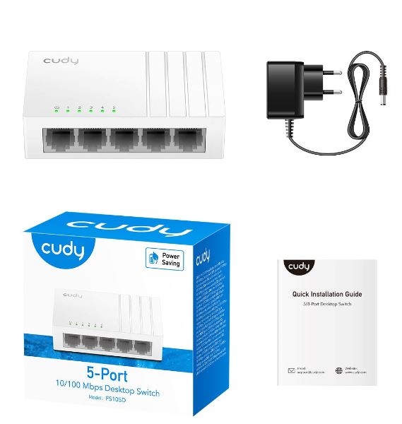 • Power adapter includedCUDY CUDY 5-Port FS105D 10/100 Mbps Unmanaged Desktop Switch